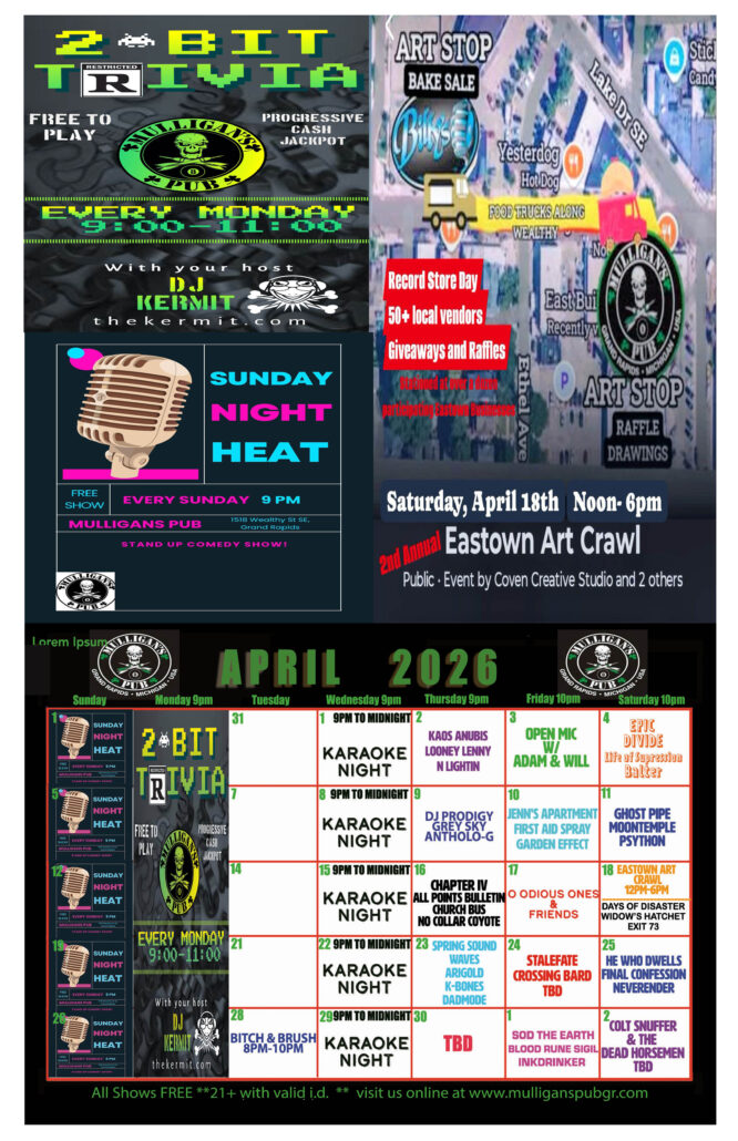 Aside from helping you have a good time, or helping you forget your problems for a day; Mulligans also has a little concert venue, where you can catch your favorite local and regional musical acts, comedy shows, and other events.
